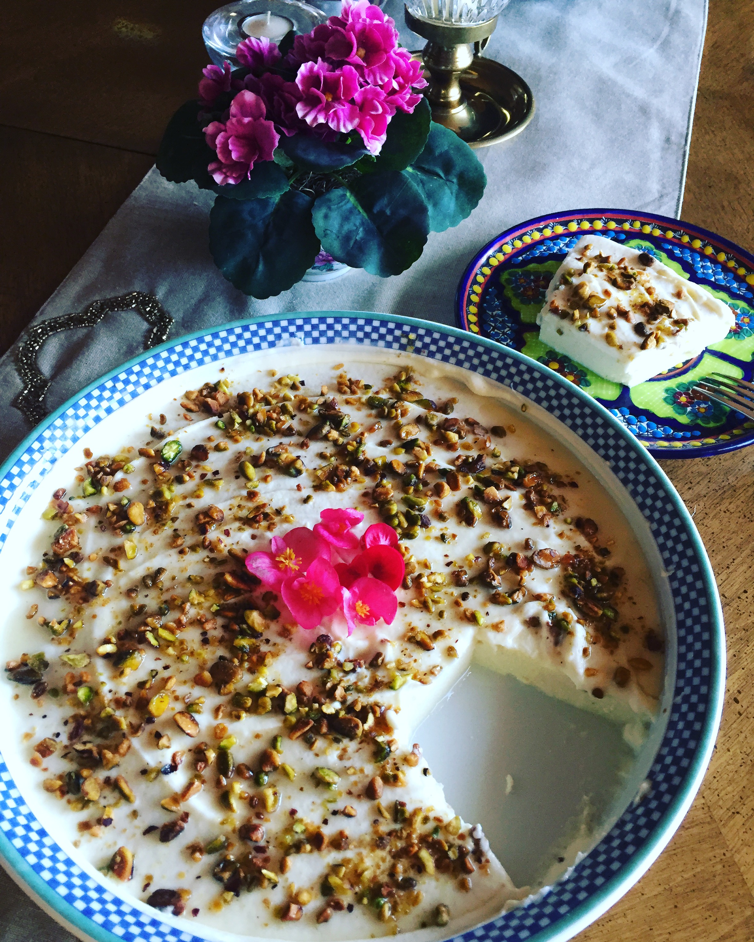 *Layali Lubnan “Lebanese Nights”—soft semolina custard scented with rose water and topped with whipping cream and pistachios