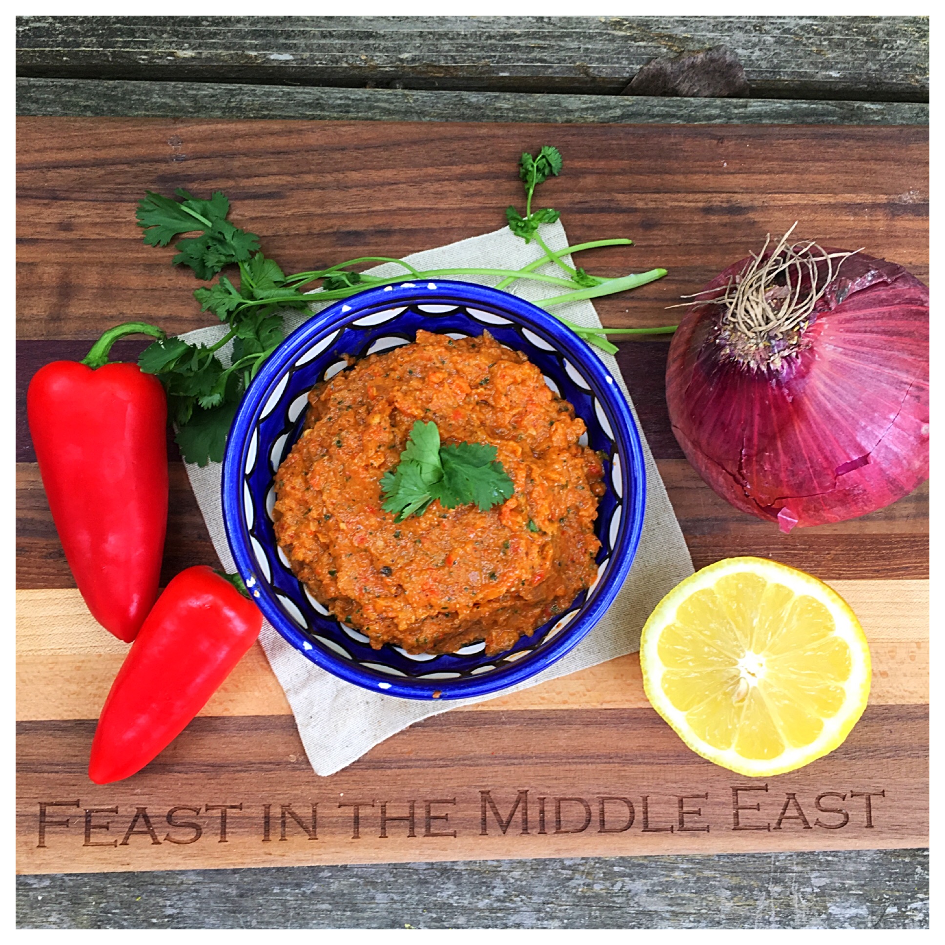 This sauce is traditionally so intense that a little goes a long way, but because I like to use so much of it on my food I made the spice slightly milder. If you like an intense sauce, double the red hot chile, cumin, mint, and coriander in the recipe below. Try this sauce over chicken or fish, roasted potatoes, or even rice dishes. This would also make an awesome Middle Eastern style bruschetta, just spread over toasted baguette slices and serve. Just smelling the red pepper, chile, onion and garlic roasting in your oven will get you and your family excited about this sauce!