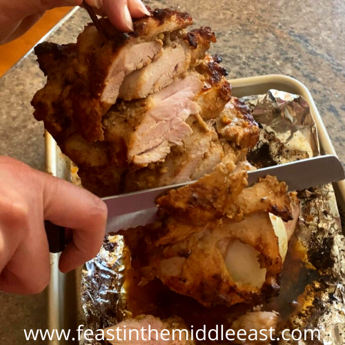 - Cooking method is important, (hint do not boil the chicken) Spit roasting is great to retain the juices and ensure even cooking–you can even use a make shift spit roaster which I will describe below!